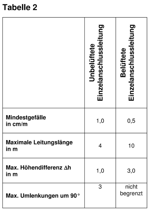 - In der Regel ist ein Mindestgefälle zu beachten.