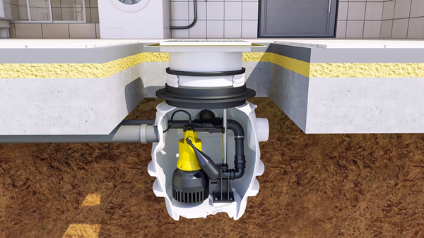 Im Zuge der Ansprüche auf Barrierefreiheit im Bad gibt es nun auch sogenannte Bodenablaufpumpen. Damit wird die Realisierung bodengleicher Duschen oft erst ermöglicht. Wichtig: Der Einbau einer solchen Anlage ermöglicht lediglich den Transport über Strecke, also hin zu einer Hebeanlage oder einer Freigefälleleitung (Bild 5). Der Rückstauschutz selbst ist auch hier über zugelassene Hebeanlagen nach DIN EN 12050 zu realisieren.