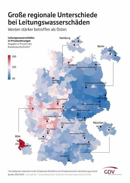 „Nach der Wiedervereinigung sind in Ostdeutschland viele Gebäude saniert worden. Dies dürfte einer der Gründe sein, warum die Schäden im Westen erheblich häufiger sind als im Osten“, sagt Hauner.