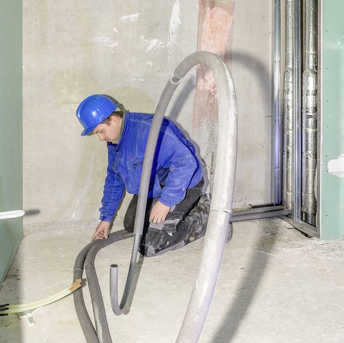Die Schachtplanung im Objektbau ist ein Ringen um jeden Zentimeter Nutzfläche. Dennoch sollten kaltgehende und warmgehende Versorgungsleitungen möglichst in getrennten Schächten installiert werden: Heizungsleitungen mit Warmwasser- und Zirkulationsleitungen, Abflussleitungen zusammen mit Kaltwasser-, Klima- oder Kühlleitungen sowie Abluftleitungen. Das spart nicht nur Energie, sondern trägt außerdem zum Erhalt der Trinkwassergüte bei. Denn schon bei einer dauerhaften Erwärmung von Kaltwasser über 20 °C steigt das Risiko einer Verkeimung des Trinkwassers deutlich.