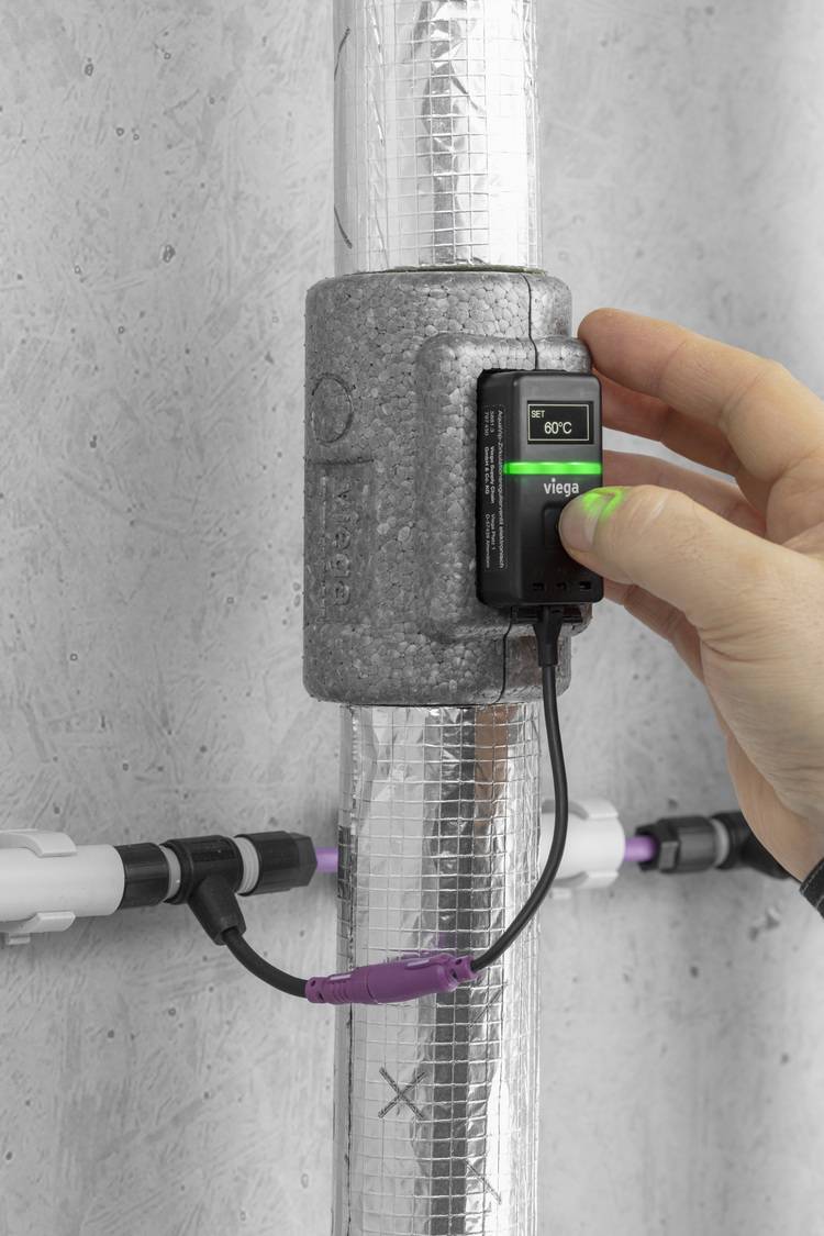 Das neue „AquaVip-Zirkulationsregulierventil elektronisch“ von Viega ist damit aus energetischen wie hygienischen Gründen ideal für die Sanierung von PWH-C-Systemen, da es unabhängig von der vorgelagerten Installation eingebaut werden kann und lediglich auf Basis abgeschätzter Wärmeverluste der Rohrleitungen bis zum nächsten Beimischpunkt auf die gewünschte Zieltemperatur voreingestellt werden muss. Durch die Standardabmessungen ist die Installation beispielsweise im Rahmen des Austausches eines Alt-Ventils zudem besonders einfach.