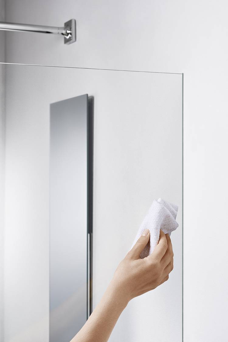 Bodenebene Duschen sind schwellenlos, barrierefrei und reinigungsfreundlicher als andere Lösungen. Schmutzanfällig sind vor allem schwer zugängliche Ecken und Kanten oder die Beschläge zur Befestigung von Duschtrennwänden. Die Vorwand-Installation bietet auch hier innovative Lösungsansätze. Mit speziellen Montageelementen lässt sich die Trennwand komplett unsichtbar in der Wand befestigen, auf sichtbare Beschläge und Halterungen kann so verzichtet werden. Die Flächen der Abtrennung sind leichter zu reinigen und bieten eine hochwertige Optik.