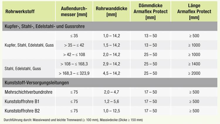 Für eine fachgerechte planerische und handwerkliche Umsetzung steht heute eine Vielzahl unterschiedlichster Produkte zur Abschottung von Leitungsanlagen zur Verfügung. Neben den brandschutztechnischen Anforderungen müssen für eine den technischen Regeln entsprechende Leitungsinstallation jedoch auch die Anforderungen des Schall- und des Wärme- bzw. Kälteschutzes beachtet werden. So muss die Dämmung z.B. die EnEV und die EN 806 [1] erfüllen.