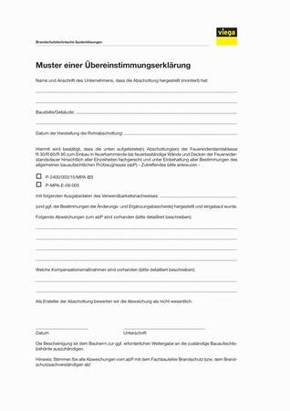Die am Markt üblichen Verwendbarkeitsnachweise (Prüfzeugnis, Zulassung oder Zustimmung im Einzelfall) enthalten ein entsprechendes Formblatt, welches als Vorlage verwendet werden sollte. Dies ist dann die Übereinstimmungsbestätigung (bei abZ) beziehungsweise die Übereinstimmungserklärung (bei abP). Hierin bestätigt der Hersteller der Bauart, dass er alle Randbedingungen des jeweils gültigen Nachweises eingehalten hat. Ebenso bestätigt er damit, dass er die erforderlichen Bauprodukte verwendet hat. Die Übereinstimmungsbestätigung/-erklärung stellt somit ein zentrales und fundamentales Dokument im baulichen Brandschutz von Rohrdurchführungen dar.