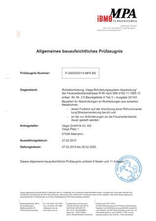 - ein allgemeines bauaufsichtliches Prüfzeugnis abP, zum Beispiel nach BRL A Teil 3 2.5, 2.6,