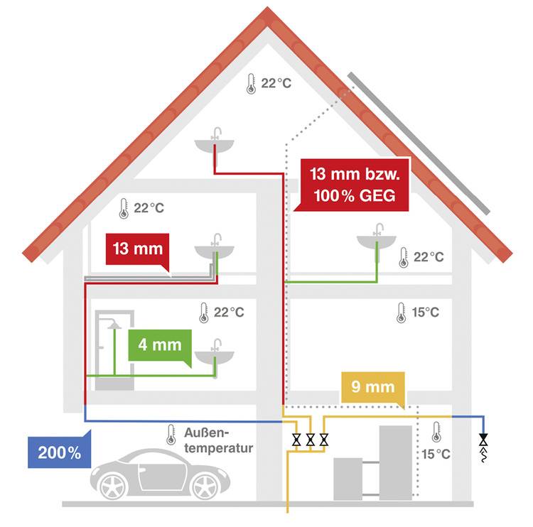 Zusätzlich soll an kalten Leitungen die Tauwasserbildung verhindert werden.