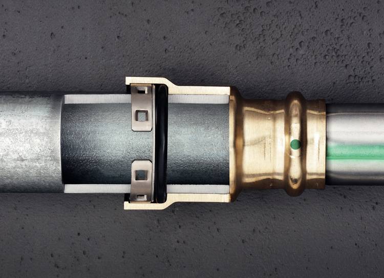 Viegas Megapress-Übergangsstück aus Rotguss für die Sanierung und Erweiterung von Trinkwasser-Installationen ermöglicht einen einfachen Übergang von verzinktem Stahlrohr auf Kupfer oder Edelstahl.