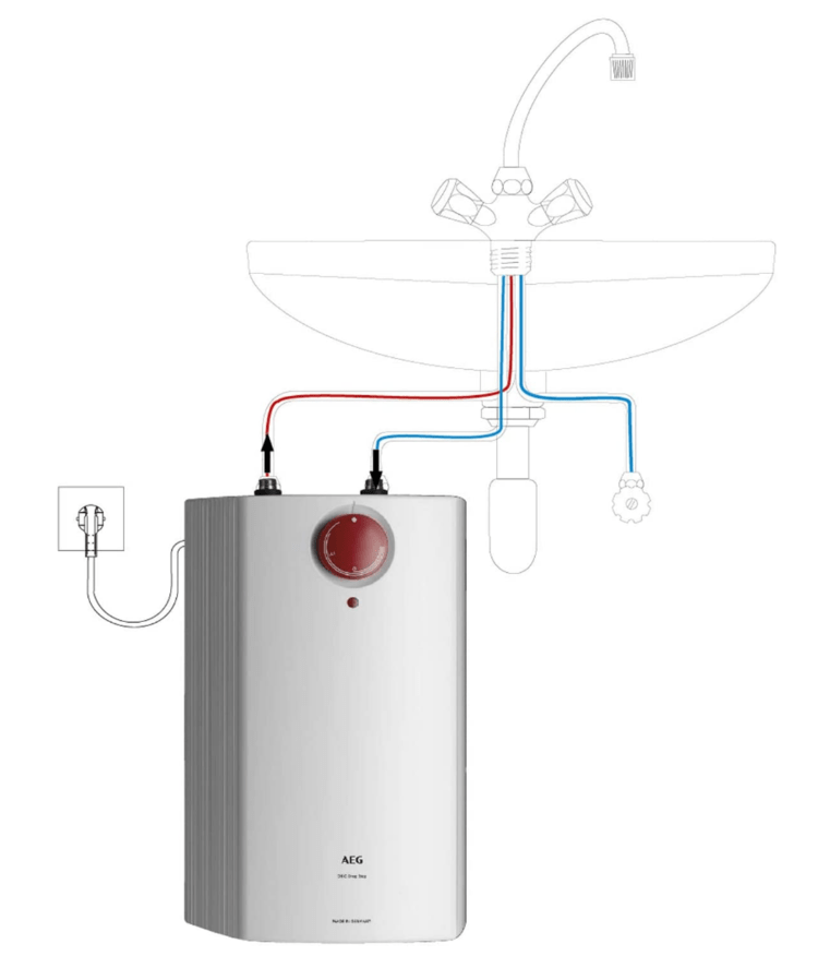 Aufgrund der günstigeren Anschaffungskosten ist die drucklose Variante, vor allem mit 5 Inhalt, zur verbrauchsnahmen Versorgung einer Zapfstelle am häufigsten anzutreffen. Es gibt WW-Kleinspeicher sowohl zur Untertischmontage, z. B. versteckt im Spültischunterschrank, als auch zur Übertischmontage oberhalb des Beckens. Allerdings achten beim wasserseitigen Anschluss vor allem Heimwerker, aber auch manche Fachleute, nicht immer auf die Besonderheiten des Niederdrucksystems – zumal sich geschlossene und offene Speichermodelle von außen nicht wesentlich voneinander unterscheiden. Diese Unaufmerksamkeit kann jedoch fatale Folgen haben.