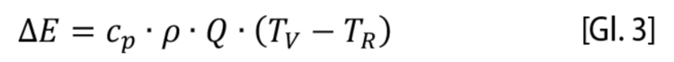 Zusammenfassend wurde festgestellt, dass eine Absenkung der Förderhöhe gleichzeitig zum Absinken der Rücklauftemperatur führt. Zur Erklärung dieses Zusammenhangs wird die Folgende Gleichung betrachtet: