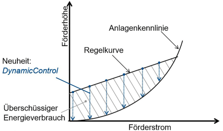 DynamicControl-Pumpenregelung: Regelkurve dicht am möglichen Minimum