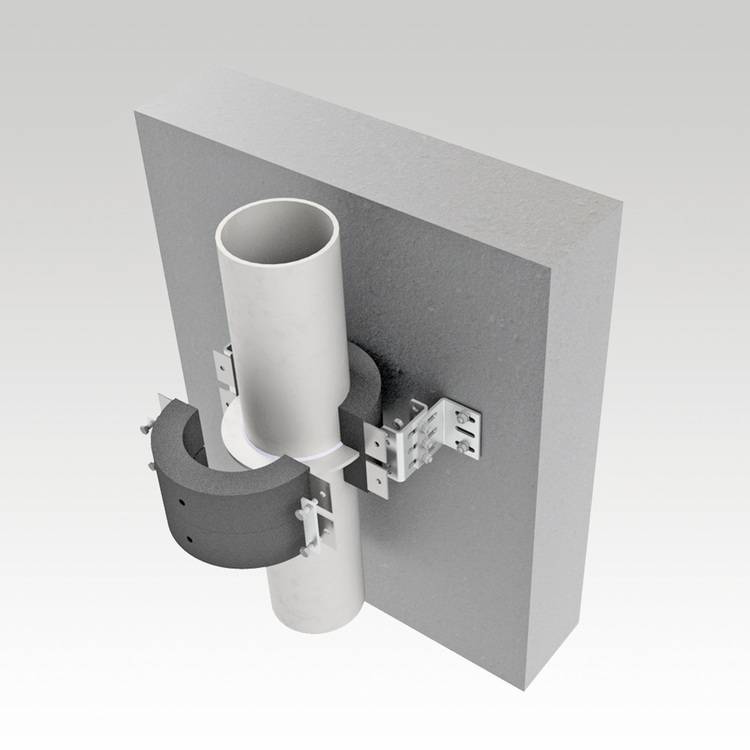 Sie ermöglicht eine formschlüssige, thermisch entkoppelte Befestigung für Nennweiten ab 60,3 mm Rohraußendurchmesser.