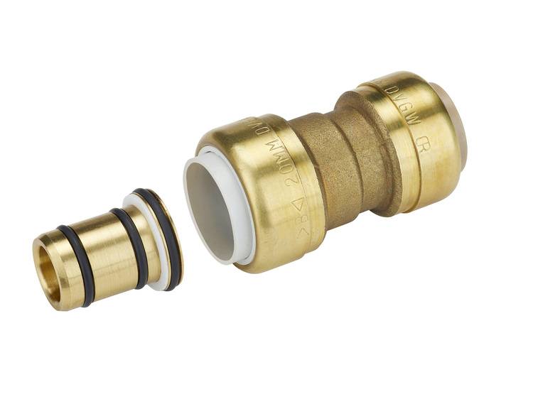 Der alpex Steckverbinder >B< Push besteht aus einem Fitting und einer Stützhülse für die Mehrschichtverbundrohr-Seite, die mit ihren zwei O-Ringen das Rohr sicher nach innen abdichtet. Die Enden des Steckverbinders für das Kupfer- und das Mehrschichtverbundrohr sind farblich gekennzeichnet: weiß für das alpex-Rohr und dunkel für das Kupferrohr. Für die einfache Montage des Übergangs von Kupfer auf Kunststoff benötigt der Installateur kein Spezialwerkzeug – Rohrabschneider und Entgrater genügen. Nur mit den Instrumenten aus dem Standardportfolio eines SHK-Fachmannes arbeiten zu können, spart Zeit und hohe Kosten für teure Spezialwerkzeuge.