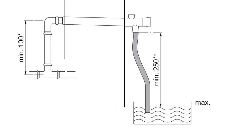 Die Armatur muss mindestens 250mm über dem höchstmöglichen Betriebswasserspiegel eingebaut werden.