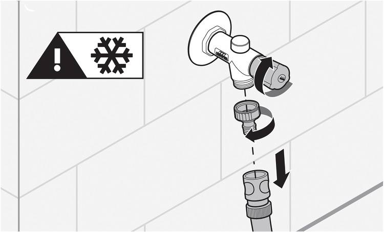Schlauchleitungen sind in der Frostperiode generell von der Armatur zu trennen.