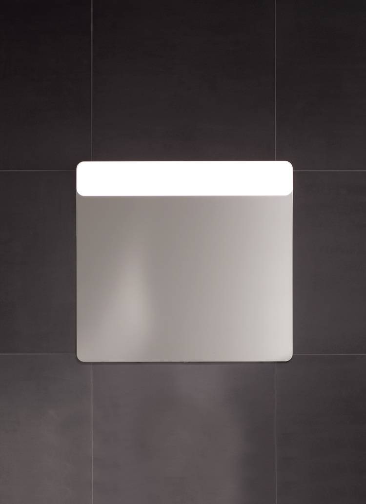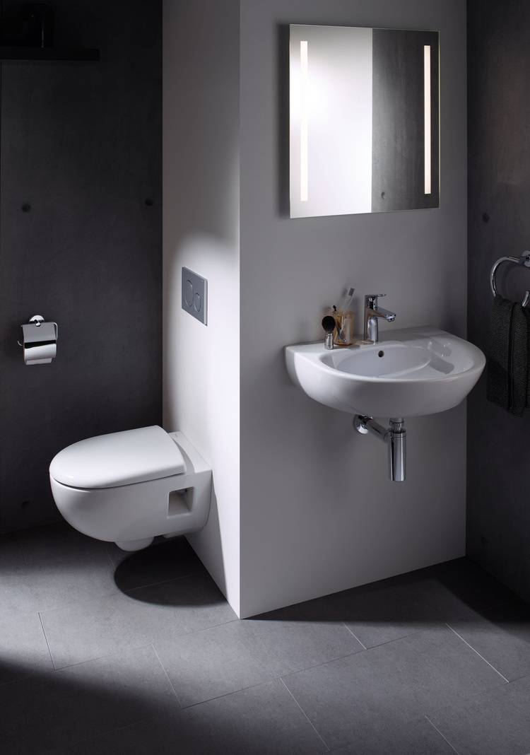 Die Lichtspiegel Option Basic und Option gibt es mit integrierten LED-Lichtleisten auf beiden Seiten oder einer Lichtleiste am oberen Rand – bei den breiteren Modellen befindet sich die Beleuchtung oben, bei den schmäleren links und rechts. Geberit Option verfügt über abgerundete Kanten und ist mit einer breiten Lichtleiste versehen. Option Basic wiederum ist im eckigen Design und mit schmalen Lichtleisten gestaltet.
