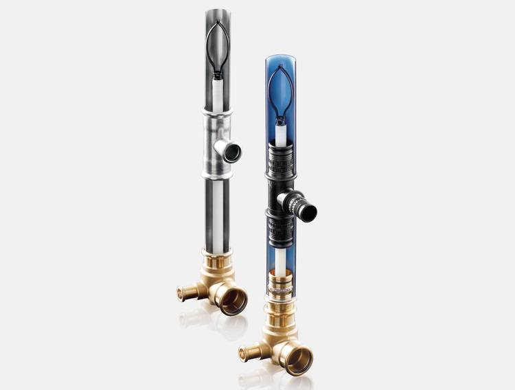 Dieses Rohr-in-Rohr-Prinzip hat natürlich noch weitere Vorteile. Die Wärmeverluste der Zirkulationsleitung werden merklich reduziert; der Installationsaufwand verringert sich, da nur ein Strang im Schacht installiert werden muss. Für die Zirkulationsleitung entfallen Dämmung, Befestigung und Brandschutzmaßnahme im Deckendurchgang.
