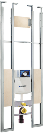 Schnelle und einfache Installation: Die Geberit Ausschubmodule sind selbsttragende, raumhohe Montagerahmen zum passgenauen Einbau in Trockenbauwände mit UW-50-Profil. Eine Aussteifung und Anbindung zur rückwärtigen Wand ist nicht erforderlich, was sich positiv auf den Schallschutz auswirkt. Bei der Montage werden die Ausschubmodule in das Bodenprofil des Trockenbauers eingesetzt, die ausfahrbaren Deckenbefestigungen in das Deckenprofil eingeschoben und mit dem Baukörper verschraubt.