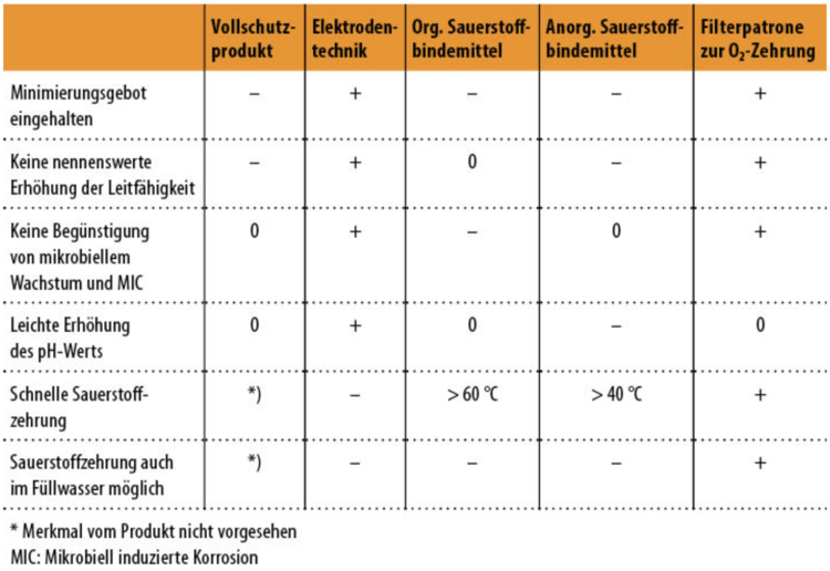 Bevor die Möglichkeiten der Sauerstoffbindung beleuchtet werden, sind noch Hinweise zu Vollschutzprodukten, die auch in korrosionstechnisch offenen Systemen zum Einsatz kommen, angezeigt.