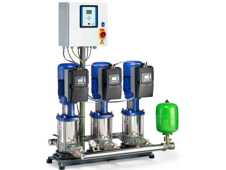 Die Mikroprozessorsteuerung (Booster Control Advanced) schaltet die Pumpen entweder kaskadenartig (K-Ausführung) oder geregelt durch Frequenzumrichter (VP und SVP) zu oder ab. Dank einer Feldbus-Schnittstelle ist auch eine Bedienung über einen externen PC möglich. LEDs in den leicht verständlichen Ampelfarben auf dem Display des Schaltschrankes zeigen die Betriebszustände der Anlage an. Bei einem eventuellen Ausfall einer Betriebspumpe schaltet die Steuerung sofort auf die nächste Pumpe um. Zur Weiterleitung von Warnungen oder Alarmen an eine übergeordnete Leitwarte stehen zwei zusätzliche potenzialfreie Kontakte auf Klemmen zur Verfügung.