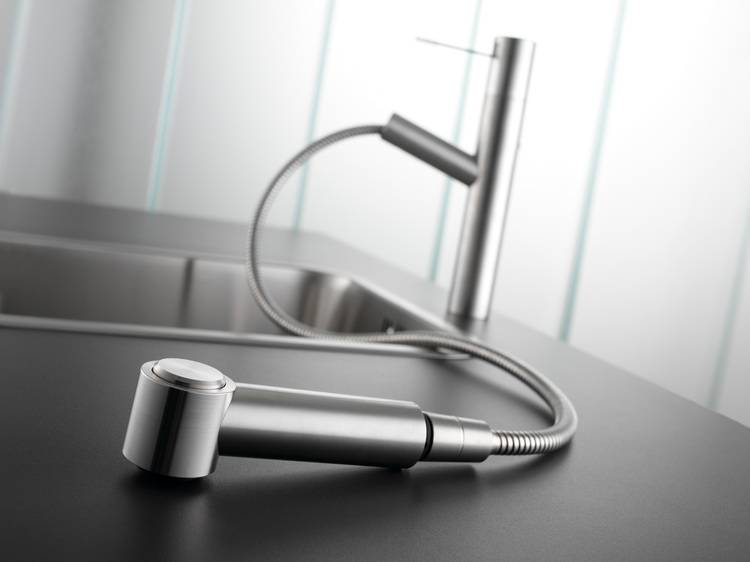 Das Modell ONO kann mit einer Auszugsbrause ausgestattet werden. Diese soll das schonende Abbrausen von Gemüse und das unkomplizierte Befüllen und Reinigen großer Gefäße erleichtern. Soll die Armatur in der Nähe des Fensters angebracht werden, kann ein Vormontagesockel verhindern, dass die Armatur beim Öffnen des Fensters im Weg ist. Mit nur einem Handgriff kann sie aus der Verankerung gelöst, seitlich abgelegt und anschließend sicher wieder eingesteckt werden. Die flexiblen Anschlüsse bleiben mit der Armatur verbunden und werden beim Zurückstecken automatisch wieder zurückgeführt.