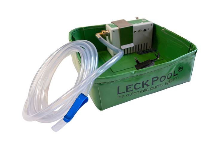 Das Unternehmen BA-Bachler hat sich dieser Problemstellung angenommen und bietet eine praxisgerechte Lösung an: Der Leckpool kombiniert eine stabile und gleichzeitig flexible PVC-Auffangwanne mit einer elektronisch gesteuerten Pumpe, die bei entsprechendem Füllstand das Wasser über einen 330 cm langen Schlauch in den nächsten Abwassereinlauf fördert. Alles automatisch geregelt, damit der Installateur nicht unnötig lange dabeibleiben muss. Das Gerät ist universell einsetzbar und bewährt sich laut Hersteller im gesamten Haustechnikbereich, wie bei Wartungen, beim Entleeren von Behältern, Speichern oder Heizkesseln und bei Kundendienstarbeiten. Mit Maßen von 30,5 x 30,5 x 10 cm und einem Gewicht von nur 2 kg findet es in jedem Transporter Platz und ist immer sofort einsatzbereit.