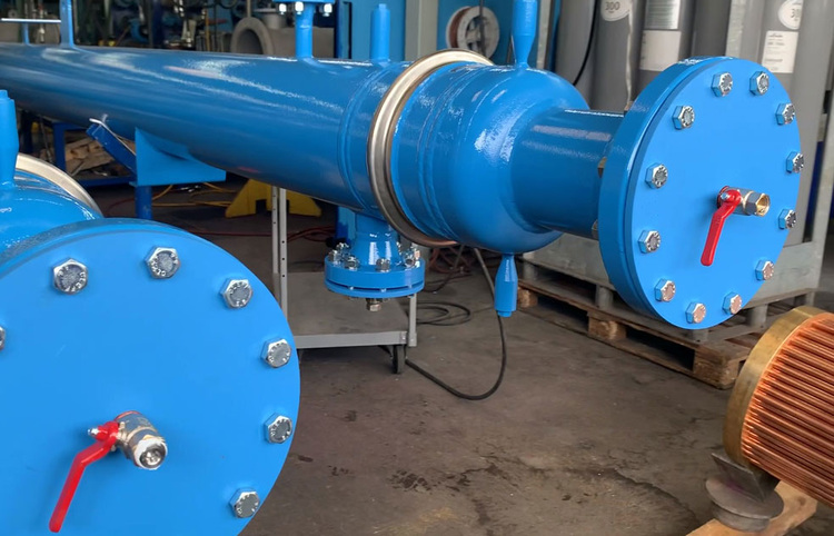 Zur Anwendung kommt der Sicherheitsrohrbündelwärmetauscher häufig, wenn ein Vermischen der Medien unbedingt vermieden werden muss, wie beispielsweise bei der Verwendung von Flusswasser als Kühlmedium. Klassisch wird hier mit einem Zwischenkreislauf gearbeitet, was den Einsatz von zwei separaten Wärmetauschern erforderlich macht. Mit dem Einsatz des neuen Sicherheitswärmetauschers SWF-HE ist nur noch ein Wärmetauscher notwendig, da eine unbemerkte Vermischung der beiden Medien durch die Überwachung des Sicherheitsraums ausgeschlossen ist - Zusätzlich sparen Sie den Platz für den zweiten Wärmetauscher und senken somit die Gesamtinvestitionskosten.