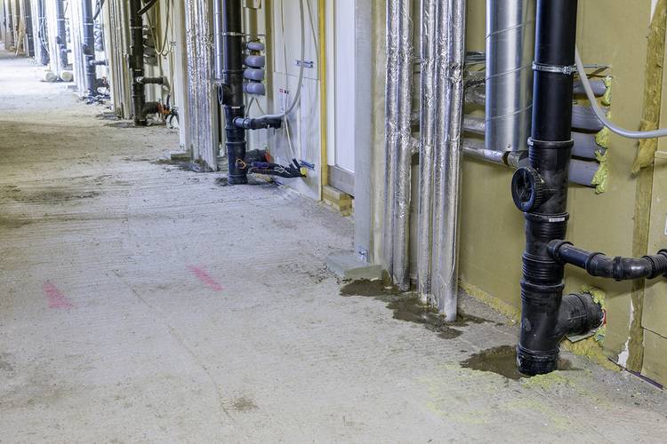 Die Dichtheitsprüfungen der Rohrleitungen erfolgten bei diesem Bauprojekt zweistufig: Die erste Dichtheitsprüfung noch im Werk, bevor der Holzboden verschlossen wurde – natürlich trocken, um Hygienerisiken zu vermeiden. Die zweite Dichtheitsprüfung fand statt, nachdem die Installation im Bauwerk komplett fertiggestellt war.