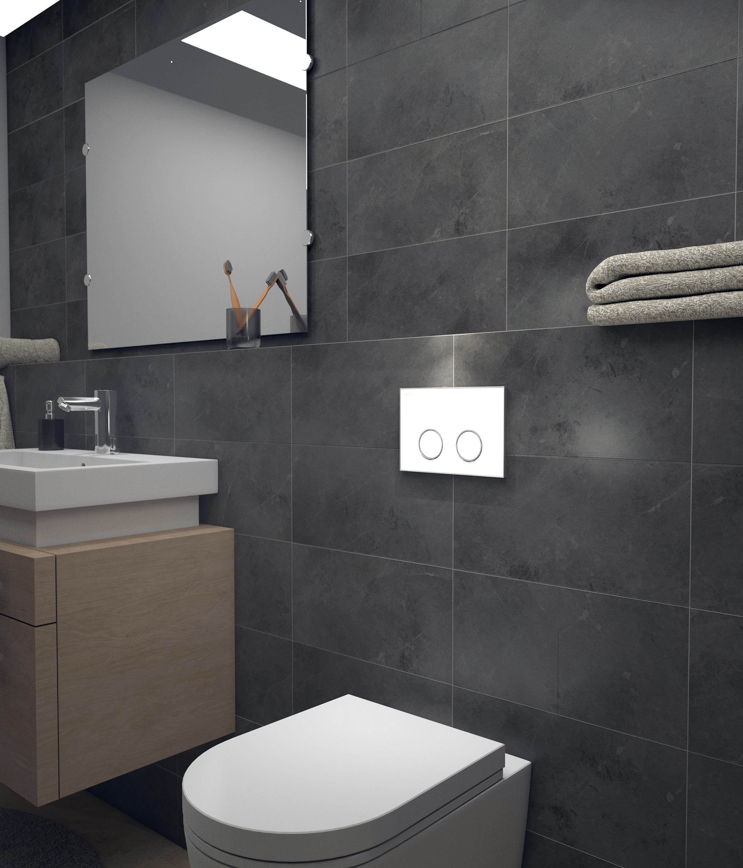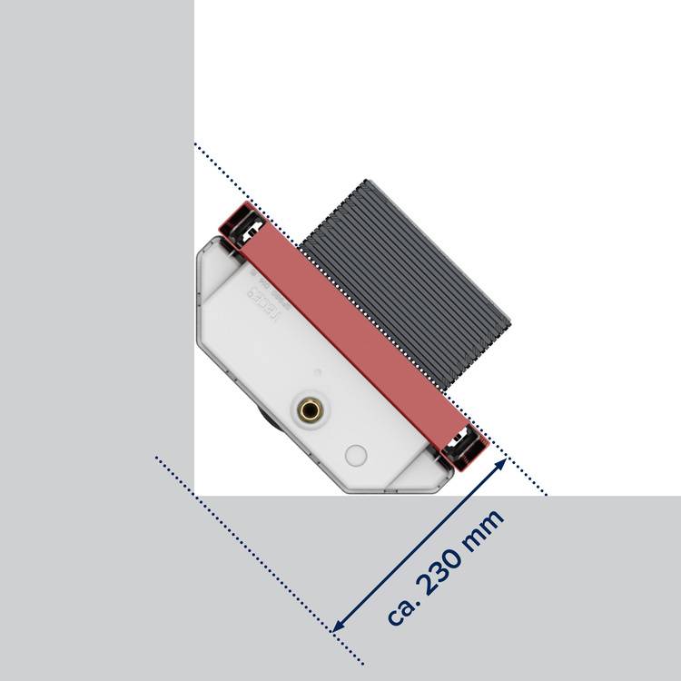 Installateure und Badplaner sind Platzmangel gewohnt. Der Kompaktspülkasten schafft hier neue Freiräume in Nischen oder beispielsweise auch für den Eckeinbau des WCs. Der Tank hat wandseitig zwei abgeschrägte Ecken, was bei der Eckmontage des Spülmoduls nicht nur platzsparend wirkt, sondern auch die gleichschenklige Anbringung erleichtert.