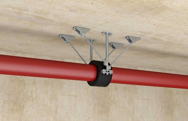 Die kompakten Festpunkte FFP-C, FFS-M und FFS-H leiten die eintretenden Kräfte direkt ins Bauwerk ab. Hierbei sind der mittelschwere FFS-M und der schwere FFS-H höhenverstellbar. Hinzu kommen variable Festpunkte: Der leichte FFP-L, der mittelschwere FFP-M und der schwere FFP-H ermöglichen die Anpassung der Abhängehöhe. Sie werden einseitig oder beidseitig mit Gewindestangen abgestrebt.