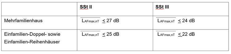 • für fremde schutzbedürftige Wohn- und Schlafräume in Mehrfamilienhäusern: LAFmax,n < 27 dB
