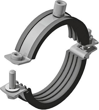 Ein sensibler Punkt ist hierbei die Befestigung der Rohrleitungen. Die Rohrschellenbefestigung bildet einen Kontaktpunkt zwischen Rohrleitung und Baukörper. Damit hat die Rohrschelle einen erheblichen Einfluss auf den Installationsschallpegel und ist deshalb ein nicht zu unterschätzendes Element unter der Vielfalt an verwendeten Installationsmaterialien. Die Rohrschelle mit Gummieinlage ist mittlerweile seit Jahrzehnten ebenso gängiger Standard wie die Dämmung von Rohrleitungen gegen Wärmeverluste bzw. zur akustischen Entkopplung vom Baukörper. Die Gummieinlage in der Rohrschelle absorbiert die Schwingung und reduziert damit erheblich die Schallübertragung in das Bauwerk. Bei der höchsten Schallschutzstufe III nach VDI 4100 kann damit allein jedoch noch nicht gewährleistet werden, dass der geforderte Schallschutz in ausreichendem Maß erfüllt wird.
