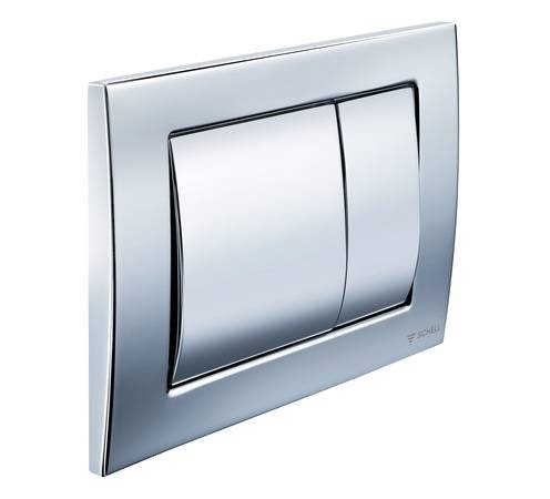 Vier der neuen Design-Betätigungsplatten aus dem hochwertigen Kunststoff ABS sind in Weiß, Chrom und Mattchrom erhältlich und verfügen über eine dauerhaft zuverlässige Tastenanbindung. Die Aufbauhöhe der Betätigungsplatte an der Wand beträgt nur 6 Millimeter.