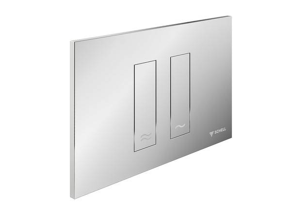 Der Entwicklung von Field liegt ein anderer gedanklicher Ansatz zugrunde: Mit dieser neuen WC-Spülauslöseplatte setzt Schell auf die Wirkung von robustem, widerstandsfähigem Ganzmetall. Die starke Materialität der WC-Betätigung aus mattverchromtem oder hochglanzverchromtem Zinkdruckguss wird durch die Stärke des Montagerahmens und die vorgewölbten großen Drucktasten betont. Field ist besonders für öffentliche Sanitärräume geeignet, in denen es auf Vandalensicherheit ankommt.