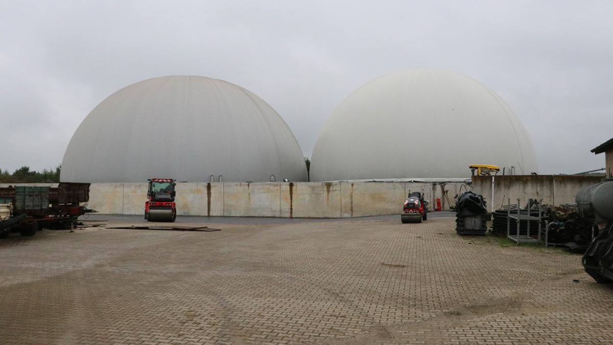 Das Biogas wird in riesigen Behältern bevorratet.