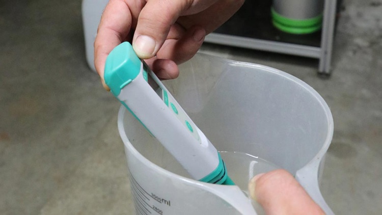 Für den richtigen pH-Wert muss dem Pufferspeicherwasser Lauge zugeführt werden.