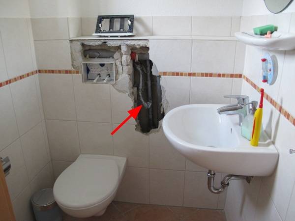Die Leckage befand sich im Gäste-WC, das an die Küche angrenzt. Hinter einer gefliesten Vorwand, im Anschlussbereich des Spülkastens, war die Leckage zu finden. Versicherer sprechen in solchen Fällen von Allmählichkeitsschäden. Diese sind besonders tückisch, weil sie oft über einen langen Zeitraum nicht bemerkt werden.