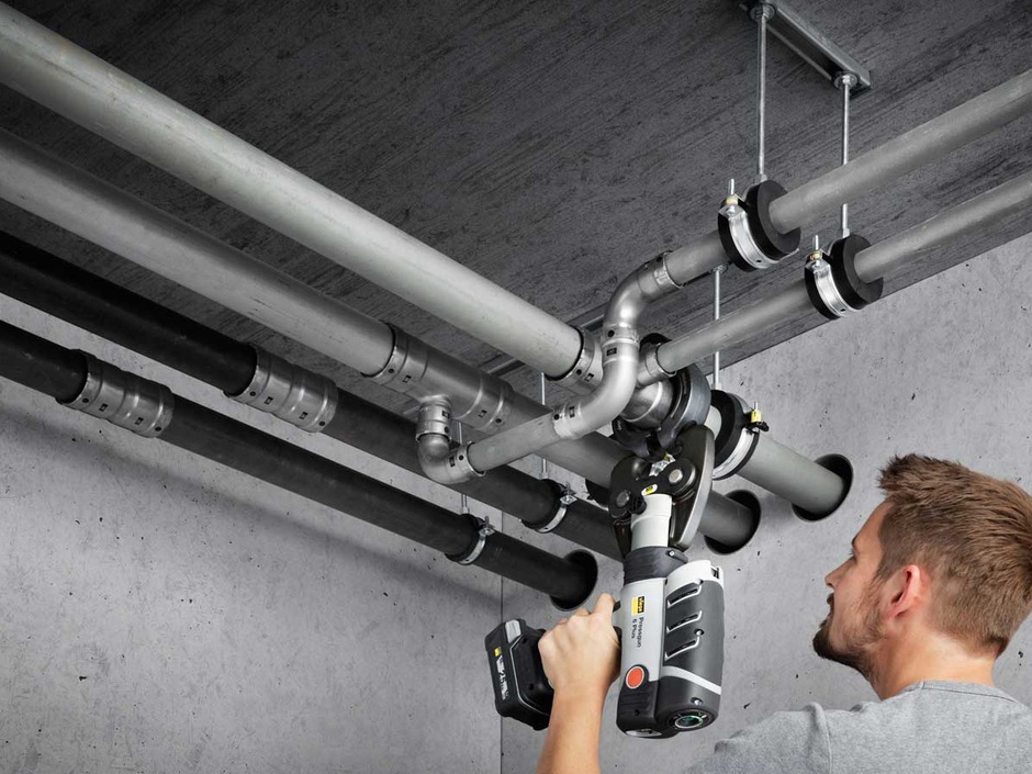 Die Rohrleitungssysteme Megapress und Megapress S von Viega sind gerade in Zeiten des Fachkräftemangels laut Hersteller eine kostensenkende Alternative zum zeitraubenden Schweißen von dickwandigen Stahlrohren. Neben der Zeitersparnis durch die kalte Pressverbindungstechnik sind die Installationen gleichzeitig sicherer, da nicht mit offener Flamme gearbeitet werden muss.