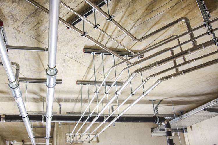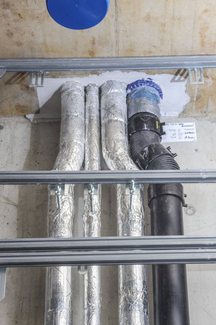 • Im Anschluss wurden die Steig- und Fallleitungen mit dem mitgelieferten Material verbunden.