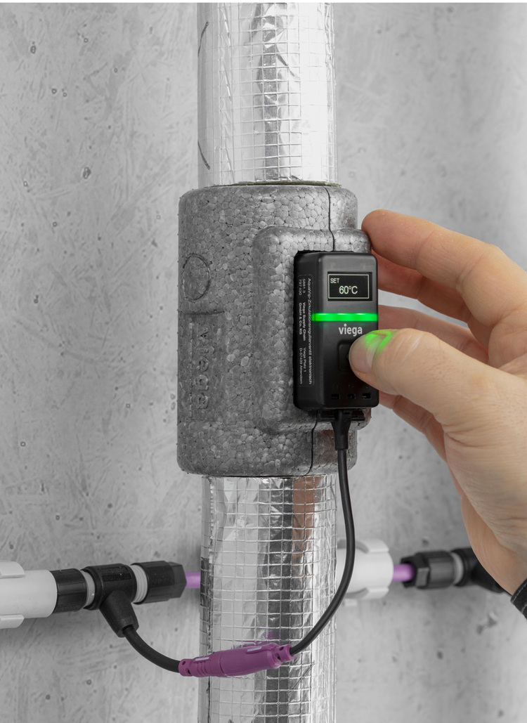 Bei Einbindung in die Gebäudeleittechnik werden die anliegenden Temperaturen zudem automatisch protokolliert. Gleiches gilt für die in der VDI 3810-2/6023-3 geforderte halbjährliche Funktionsprüfung, die bei den elektronischen Zirkulationsventilen von Viega sogar täglich durchgeführt und als Status mittels LED angezeigt wird. Die „AquaVip-Zirkulationsregulierventile elektronisch“ sorgen damit nicht nur für eine hoch präzise Temperaturhaltung innerhalb der definierten Temperaturgrenzen, sondern bieten gleichzeitig mehr Betriebssicherheit.