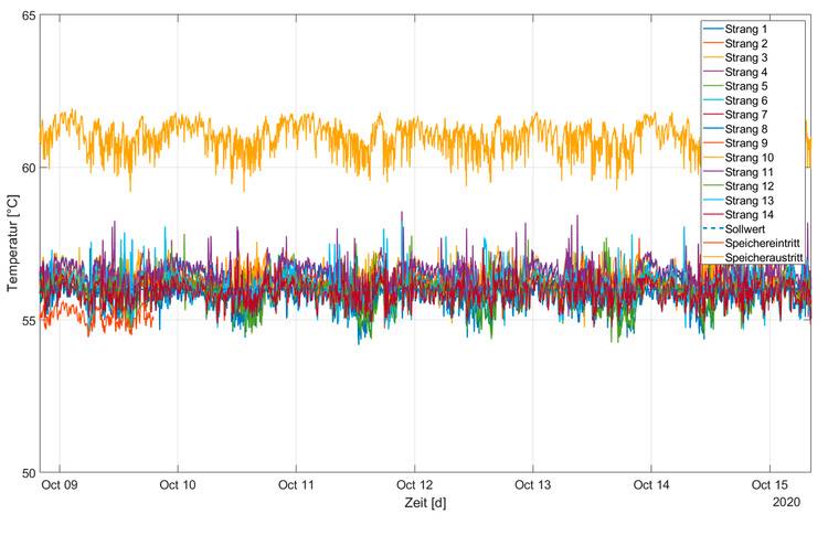 Durchgeführt wurden die Messreihen in zwei identischen Mehrfamilienhäusern aus den 60er-Jahren. Dort waren ursprünglich statische Ventile mit geschätzten Voreinstellwerten bzw. thermostatische Ventile auf Werkseinstellung installiert. In beiden Gebäuden wurden bei der Bestandsaufnahme deutliche Abweichungen der Temperaturen an den Ventilen vom voreingestellten Soll-Wert (58 °C) festgestellt. Die Regulierventile mit Dehnstoffelement im Vergleich erreichten zudem, möglicherweise aufgrund von Defekten, lediglich eine geringfügig höhere Qualität des hydraulischen Nicht-Abgleichs. So lag die Temperatur in einem Strang beispielsweise im Mittel 7,6 °C unterhalb des Einstellwertes, also deutlich zu häufig und zu lange außerhalb der hygienisch definierten Spreizung von 60/55 °C.