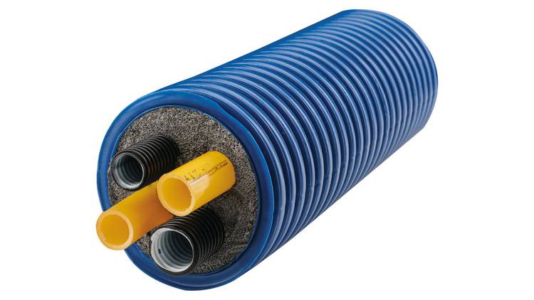 Durch die Kombination von Medium- und Leerrohren gelingt die Installation laut Hersteller schnell und einfach. Um Rohre und Kabel in das Gebäude zu verlegen, ist nur eine einzige Wanddurchführung nötig. Da der Biegeradius gering ist, kann sehr flexibel installiert werden – und die integrierten Leerrohre ermöglichen ein sicheres und einfaches Verlegen von Kabeln. Dank der kompakten Bauweise ist das Gewicht niedrig. Die Rohre werden auf Kundenwunsch zugeschnitten, somit entstehen keine Abfälle.