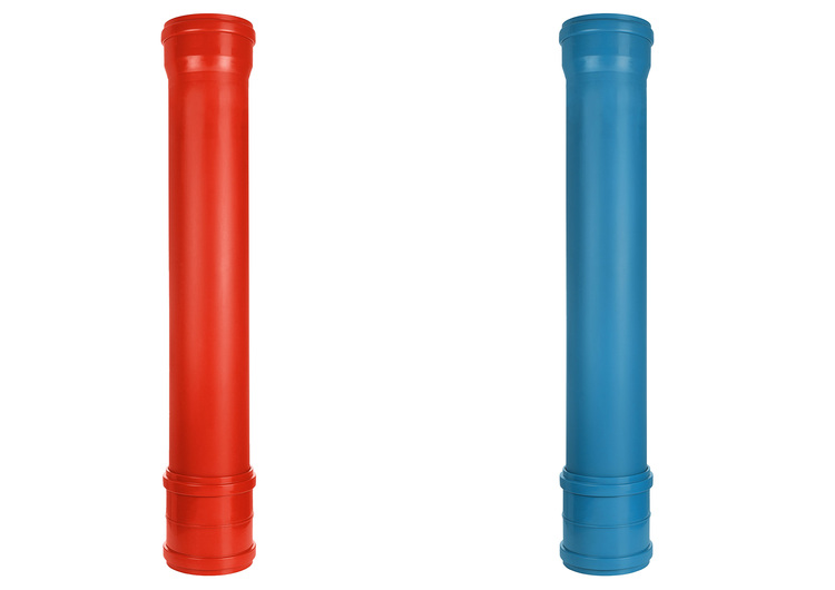 Die verschiebsichere Dichtung aus EPDM lässt sich zum Reinigen oder Austausch einfach entfernen und wiedereinsetzen. Acaro PP von Wavin ist ein extrem belastbares PP-Rohr, das zum Beispiel in Trinkwasserschutzzonen eingesetzt werden kann. Ebenfalls ist es mit integrierter Muffe als Regenwasserrohr in Blau erhältlich.