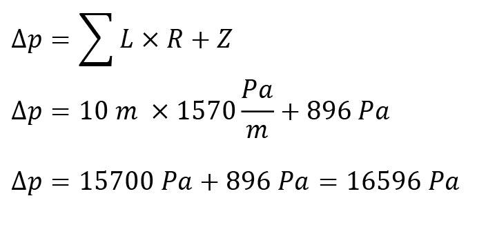 Diese Rohrstrecke mit Bogen stellt also einen Widerstand von 16 596 Pa oder rund 166 mbar dar.