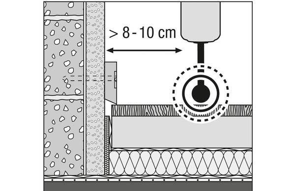 - Wenn der Kugelkopf an einer Wandecke platziert wird, sind die Messwerte ggf. höher, da sich zwei oder drei Flächen im Messbereich befinden. Halten Sie einen Mindestabstand von 8 bis 10 cm zu anderen Flächen ein, um Interferenzen zu vermeiden.