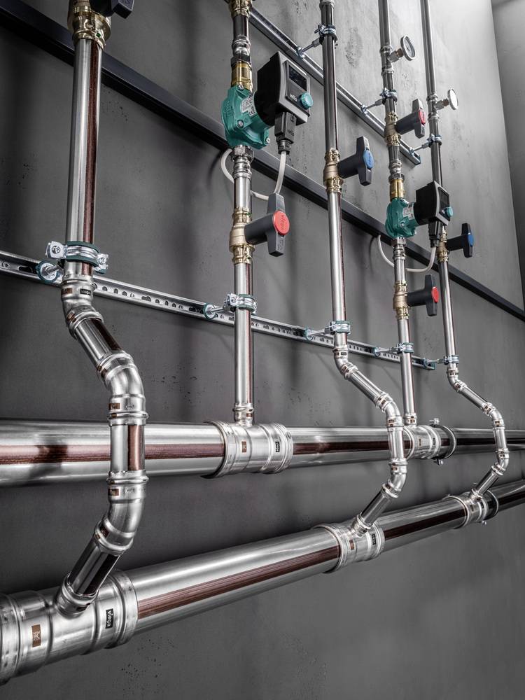 In vielen Industriebetrieben ist die Installation geschlossener Kühlkreisläufe zwingend für den Betrieb von Maschinen oder einer qualitätssichernden Produktionsumgebung. Steigende Gradzahlen und Hitzetage im Sommer machen die Kühlung von Wohn- und Verwaltungsgebäuden jedoch inzwischen genauso notwendig. Dank des Edelstahl-Pressverbindersystems Temponox von Viega ist der Kostenaufwand dafür deutlich gesunken. Die Rohre aus der Legierung 1.4520 erfüllen die Voraussetzungen für geschlossene Kühlkreisläufe optimal: Sie sind robust, signalisieren auf den ersten Blick die Wertigkeit der Installation und senken aufgrund der hohen Beständigkeit des Werkstoffs die Aufwendungen zum Schutz gegen Außenkorrosion.