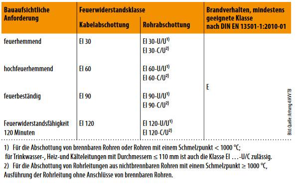 In Deutschland bedürfen brandschutztechnische Rohr- und Kabelabschottungen eines nationalen Verwendbarkeitsnachweises (§ 16a MBO, Anhang 4 Pkt. 6.2 und 6.3 Muster-Verwaltungsvorschrift Technische Baubestimmungen MVV TB), um als erforderlich Brandschutzmaßnahme verbaut werden zu dürfen.