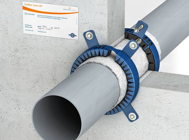 Brandschutzmanschette Curaflam XS Pro. Auch im Falle einer nicht wesentlichen Abweichung muss die Übereinstimmungsbestätigung durch den Anwender erfolgen. Der Hersteller des Abschottungssystems kann den Anwender der abweichenden Bauart aber mit technischen Stellungnahmen unterstützen.