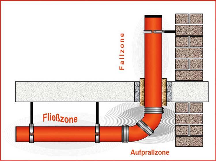 Körperschallbrücken müssen - unabhängig vom Werkstoff der Abwasserleitung - grundsätzlich vermieden werden. Schon durch eine einzige Körperschallbrücke, gleichgültig ob bei einem Abwasserrohr aus Metall oder Kunststoff, kann der geforderte Schallschutz erfahrungsgemäß nicht mehr erfüllt werden.