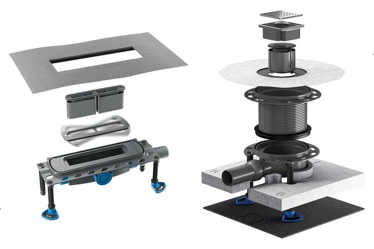 Zertifizierter Schallschutz nach DIN 4109 und VDI 4100 wird außerdem durch schallentkoppelte Montagefüße sowie geprüfte Schallschutzmatten und Montagehilfen passend zu den Ablaufgehäusen sichergestellt. Ein weiterer Vorteil: eine sichere und einfache Anbindung der Ablaufgehäuse an bauseits verwendete Wärme- bzw. Trittschalldämmung. Über schalldämmende Duschelemente ist es schließlich möglich, effektiven Schallschutz ganz ohne Estrichkonstruktion in der bodengleichen Dusche zu realisieren.
