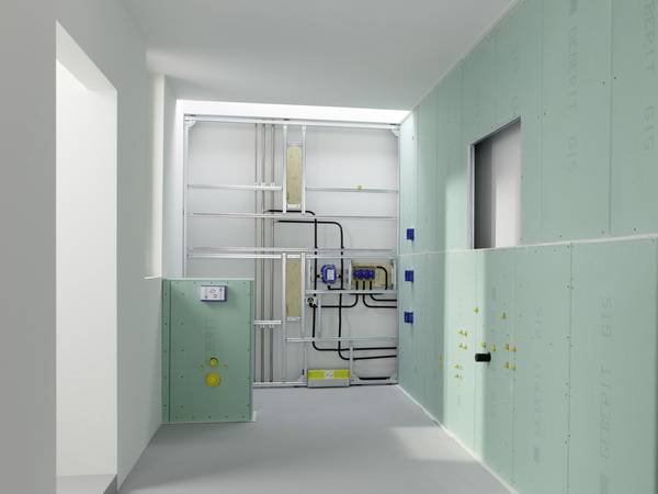 Nicht von ungefähr hat die Trockenbautechnik als Einzelelementmontage (mit stabilem Rahmen) oder als Trockenbaumontagesystem (mit einem stabilen Grundgerüst) ihren festen Platz in der Gebäudetechnik gefunden. Dazu addiert sich als Metallständerwandkonstruktion ein zunehmender Marktanteil im Wohnungsbau. Bei dieser Ausbaumethode wird aus der Vorwand- eine Inwandtechnik, da die Elemente flächenbündig in die Metallständer integriert werden.